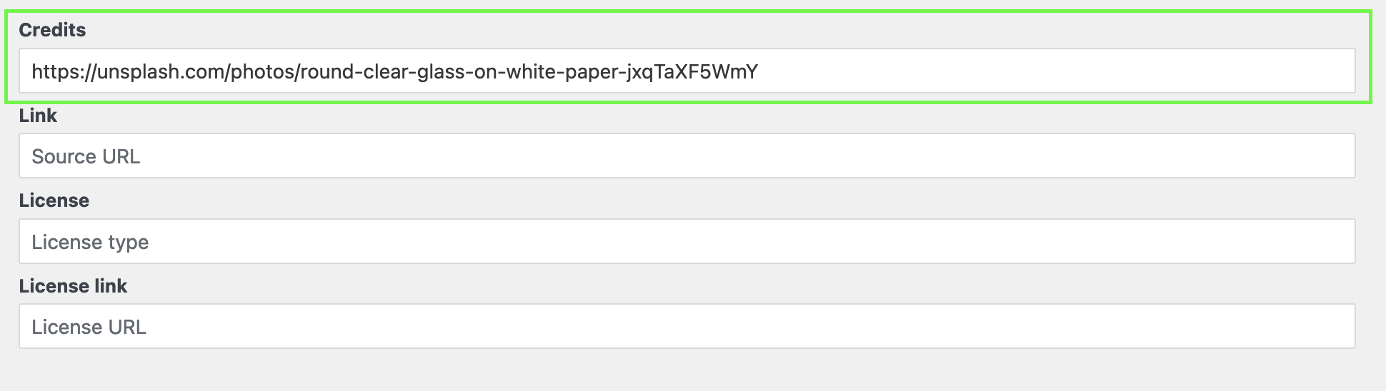 - Paste the credits as the caption of the image.